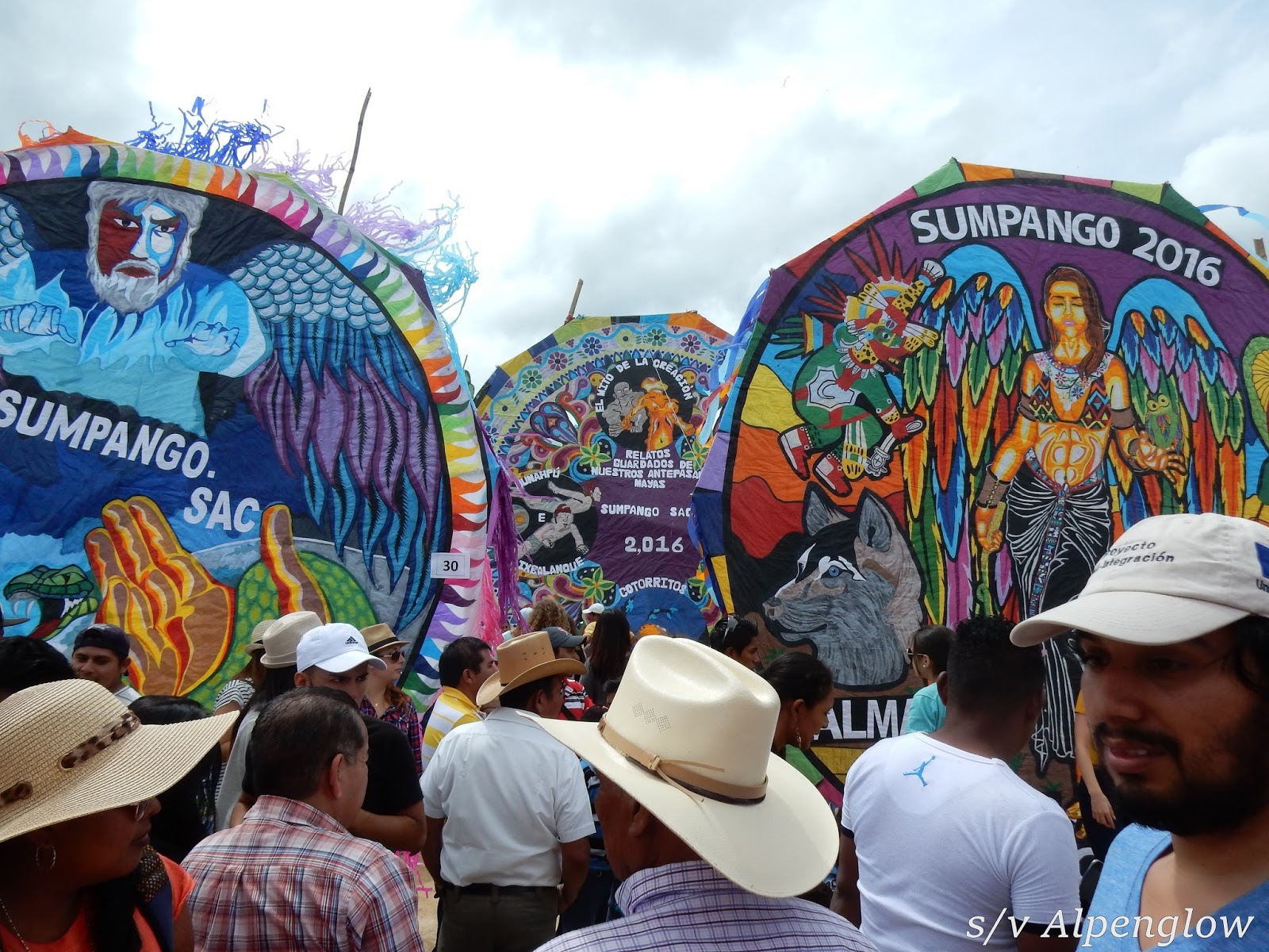 On November 1st, Guatemalans celebrate Todo Santos (All Saint's Day). Massive kites are flown in cemeteries or large areas to release the souls of the dead from their agony. We chose to visit the kite festival in Sumpango. The colorful kites made of paper and bamboo are huge circular creations, measuring up to 20 feet tall. Teams of men work hard to launch the kites and keep them afloat. The kites often come crashing down into the crowds so one must be vigilant to not get hit by one of them. It's quite exciting.